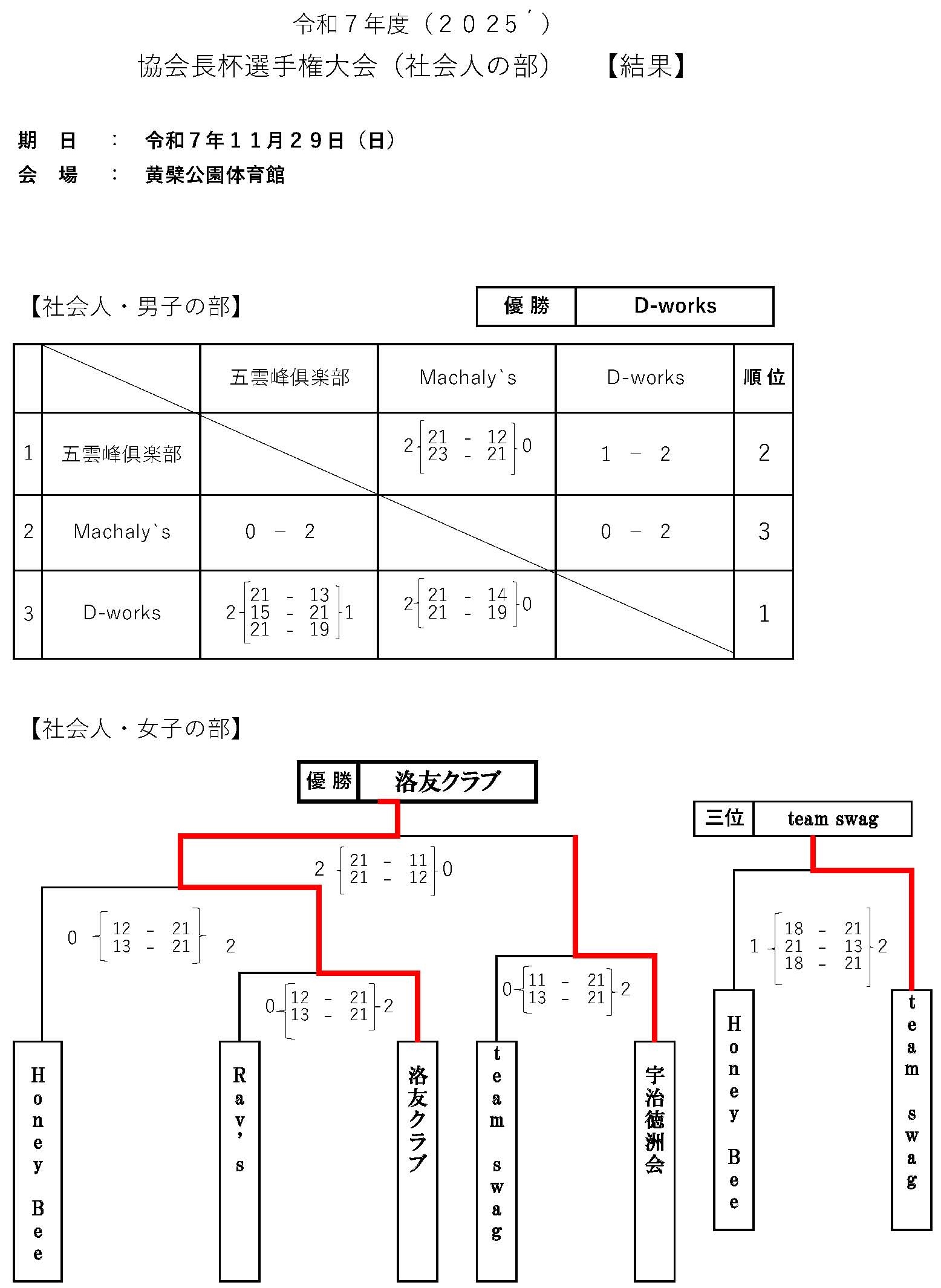 11/29 協会長杯選手権大会(社会人の部)の結果