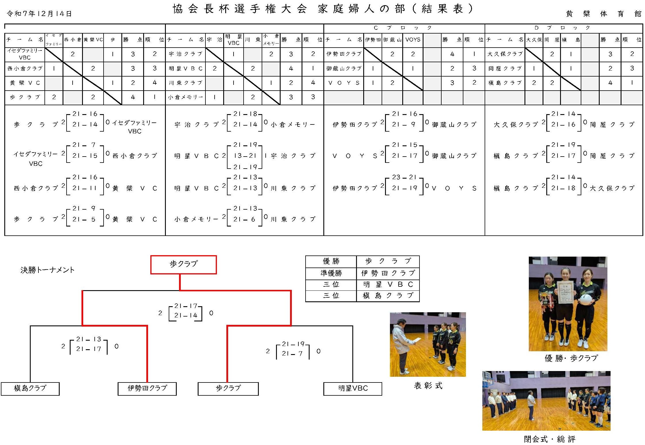 12/14 協会長杯選手権大会(家庭婦人の部)の結果