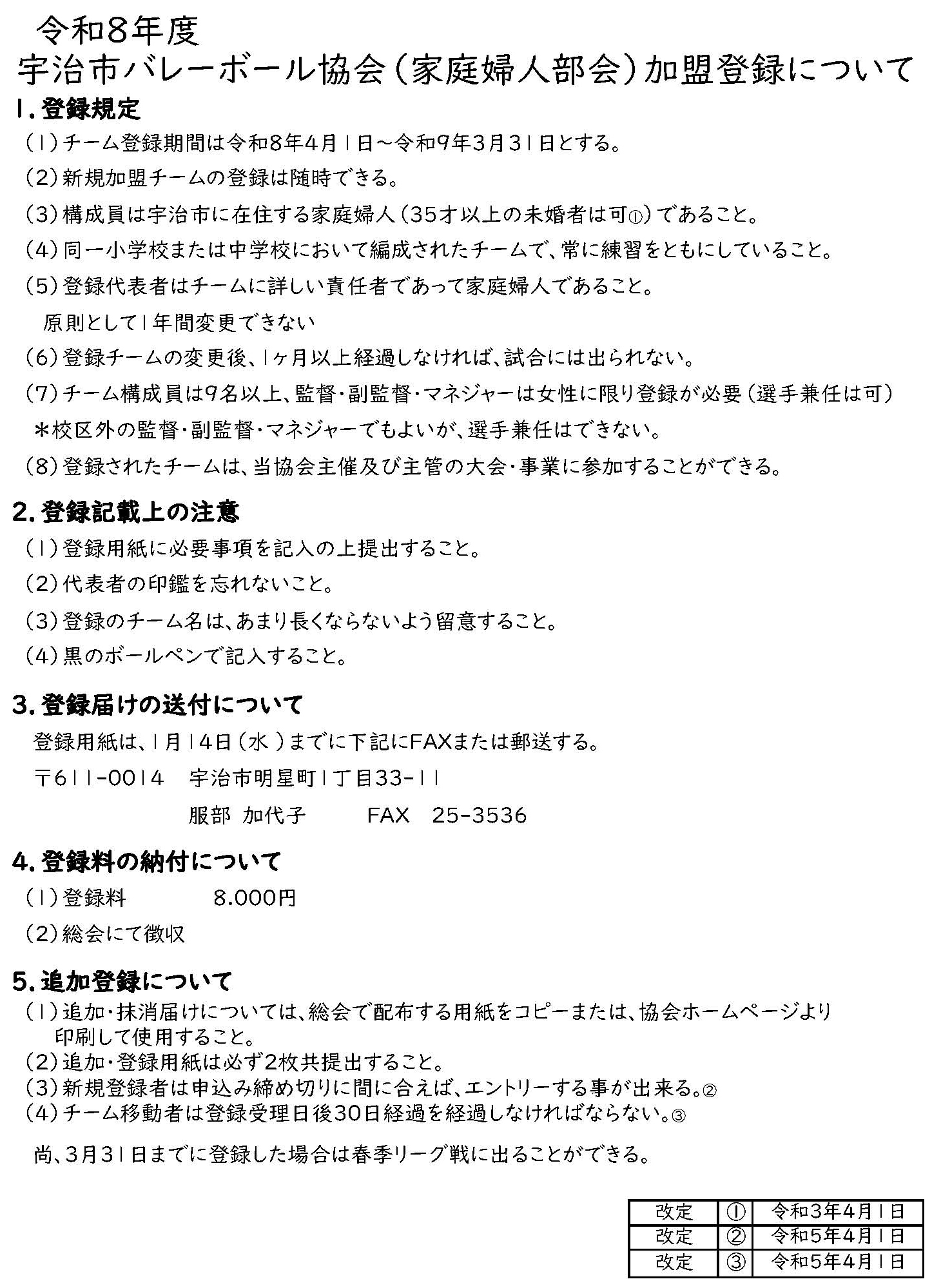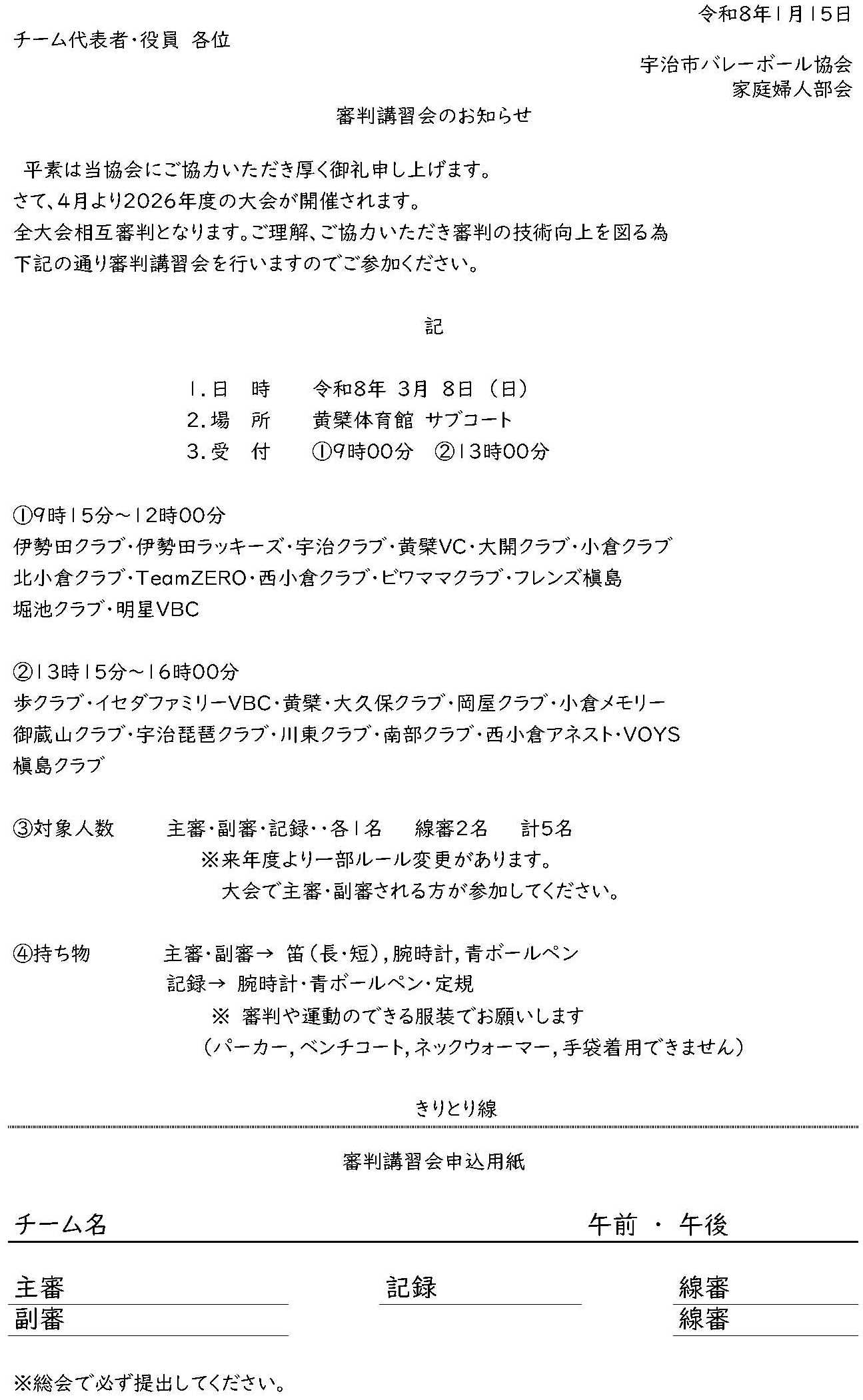 「令和8年度宇治市バレーボール協会(家庭婦人部会)加盟登録について」