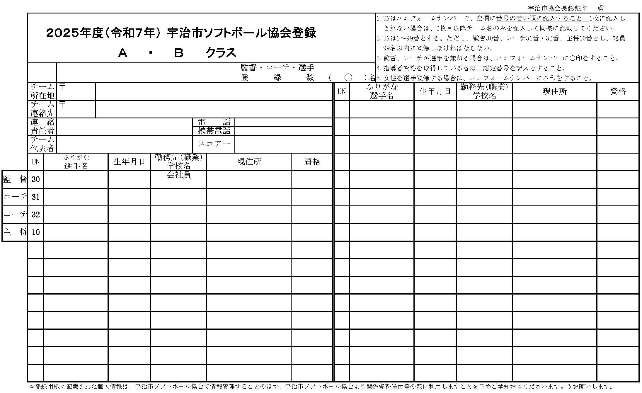協会登録及び選手登録変更届(エクセル版)を掲示しました。