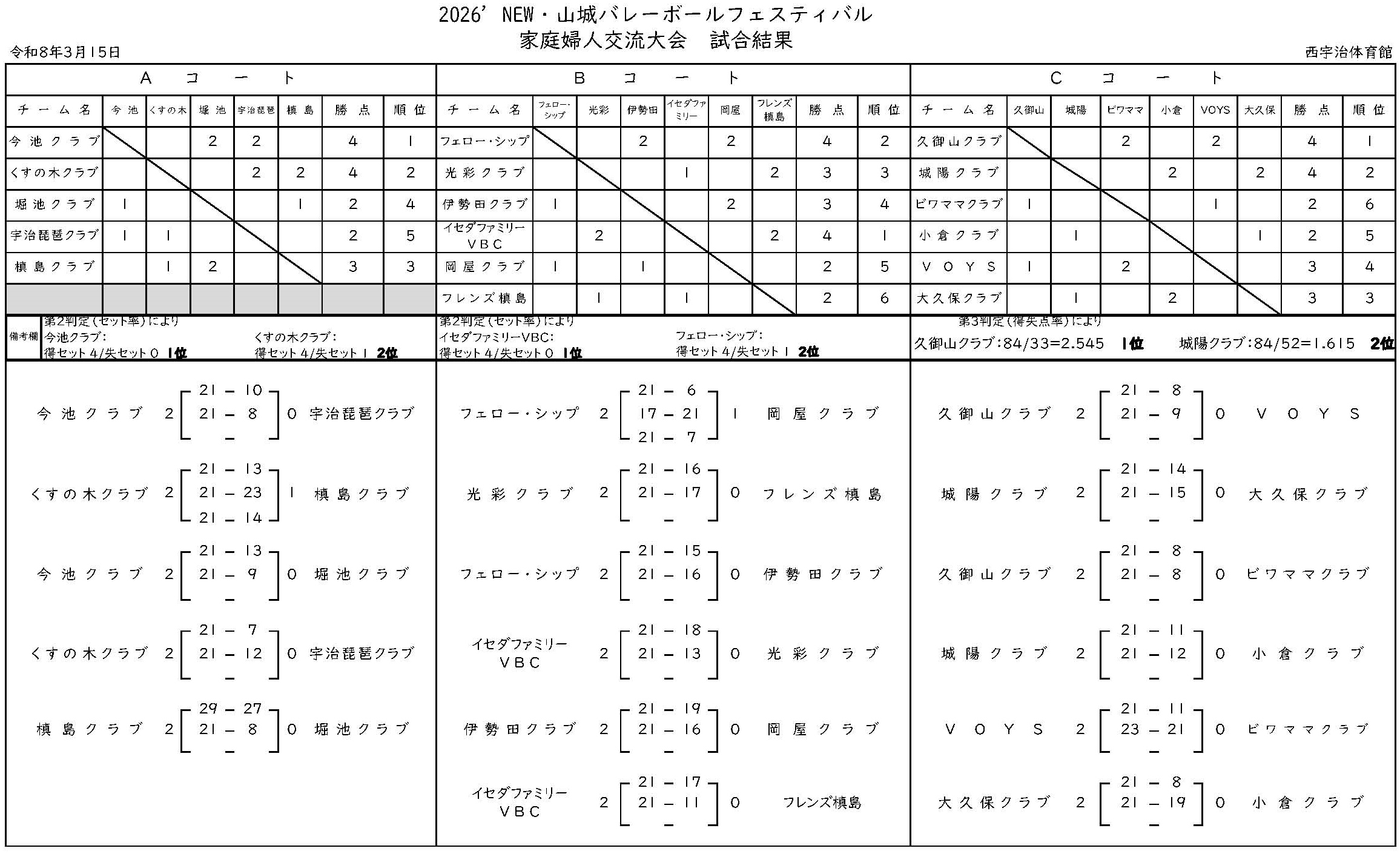 03/15 2026’New・山城バレーボールフェスティバルの結果