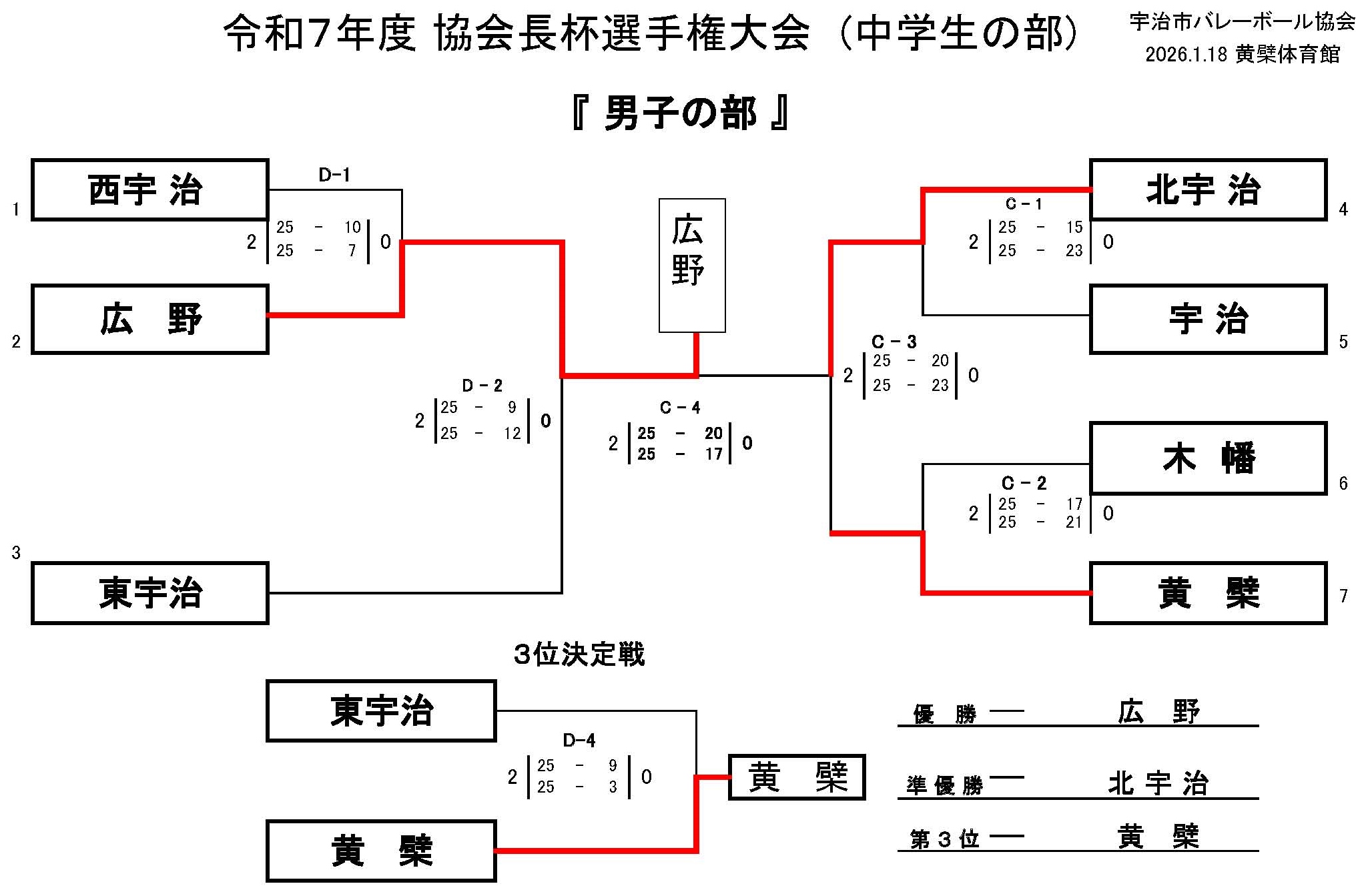 令和7年度宇治市バレーボール協会 協会長杯(小学生の部)の結果