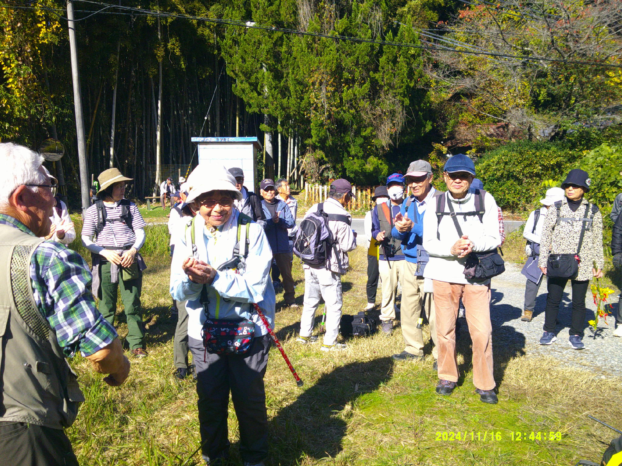 当日は最高気温が21度で参加者も54名と多くの参加がありました。今回は比較的長い行程でバス下山の方も有り、全行程歩きでの28名は元気に歩ききりました。